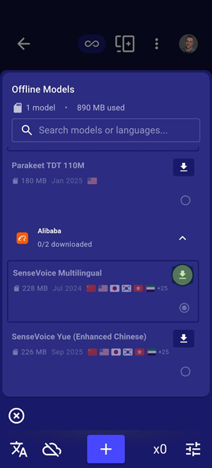 Or you can choose from the Multilingual or Yue model for Alibaba